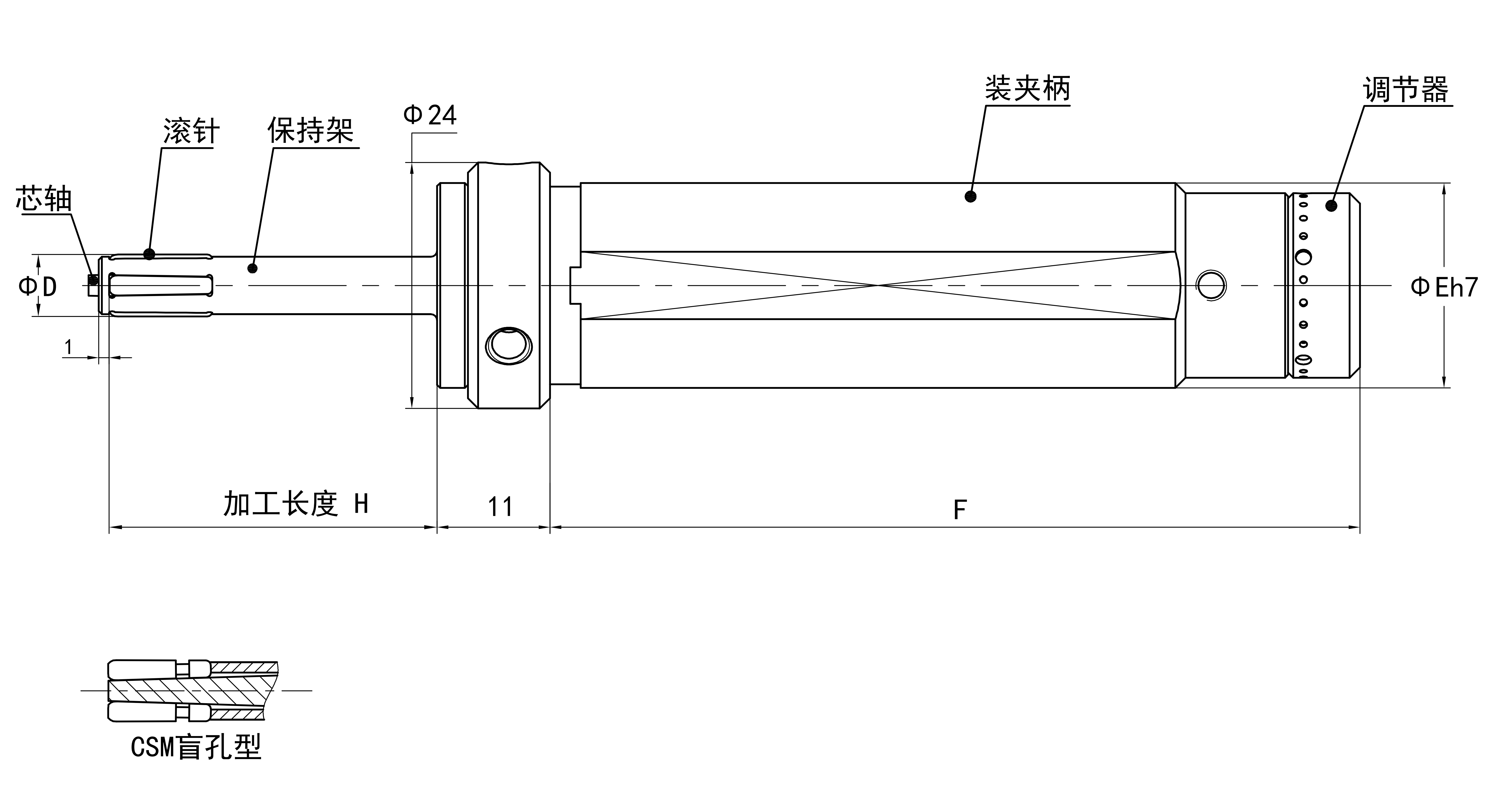 本工具調節(jié)機構內藏在柄部內,并且柄部標準可根據CNC機床安裝定制,比較適合有行程限制或刀具相鄰安裝會干涉的機床,一般用在走芯機較多。